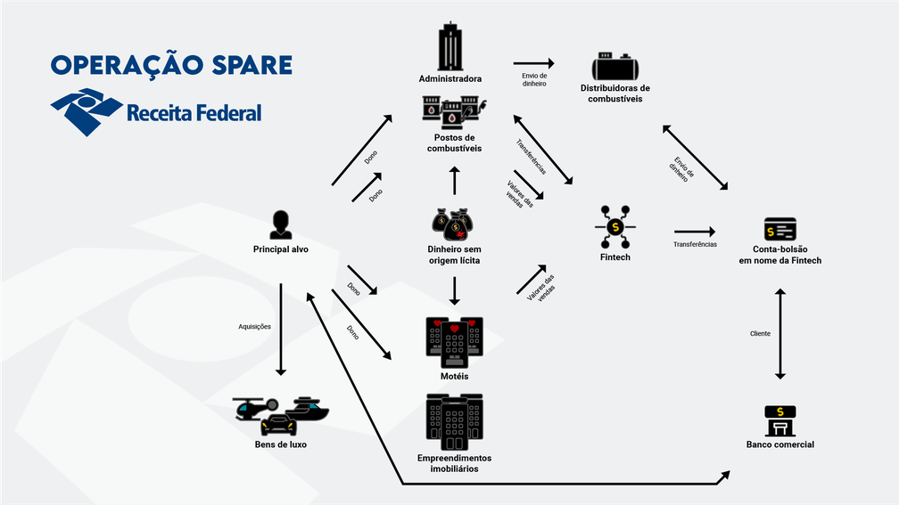 Segundo a Receita, essas compras não eram compatíveis com a receita declarada pelos motéis, indicando um esquema de lavagem de dinheiro. O patrimônio real dos investigados seria muito maior do que o declarado, estimando-se que os bens levantados representem apenas 10% do total. A movimentação também gerou R$ 45 milhões em lucros e dividendos para sócios parceiros da organização criminosa.